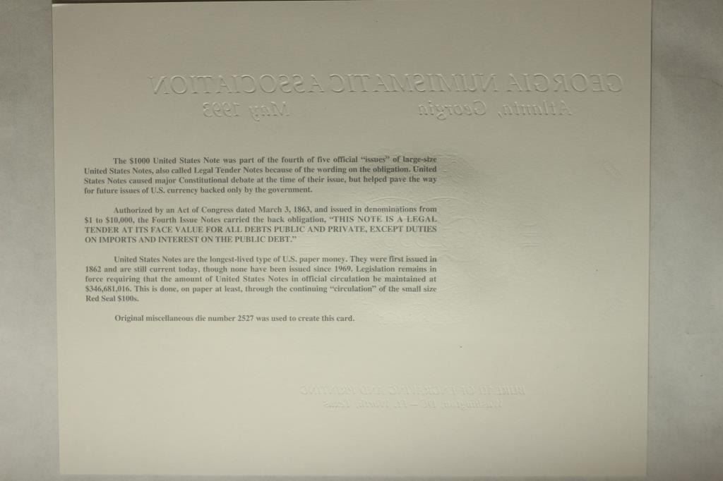 WITH ENGRAVE $1000 US NOTE (COPY) PRINTED BY THE BEP