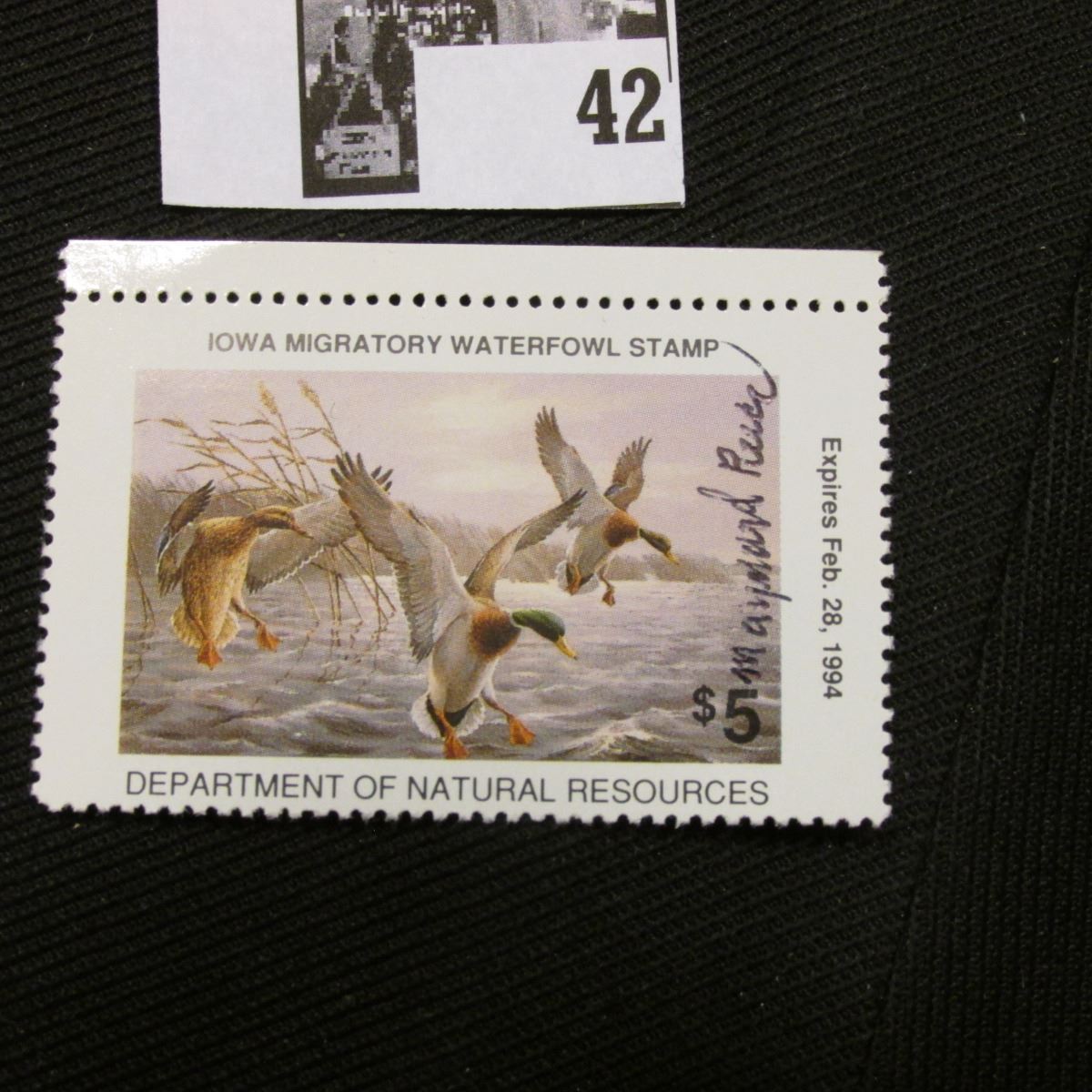 1993 Iowa State Conservation Commission Migratory Waterfowl Stamp, VF, NH, Signed by the Artist "Maynard Reece". IA 22.