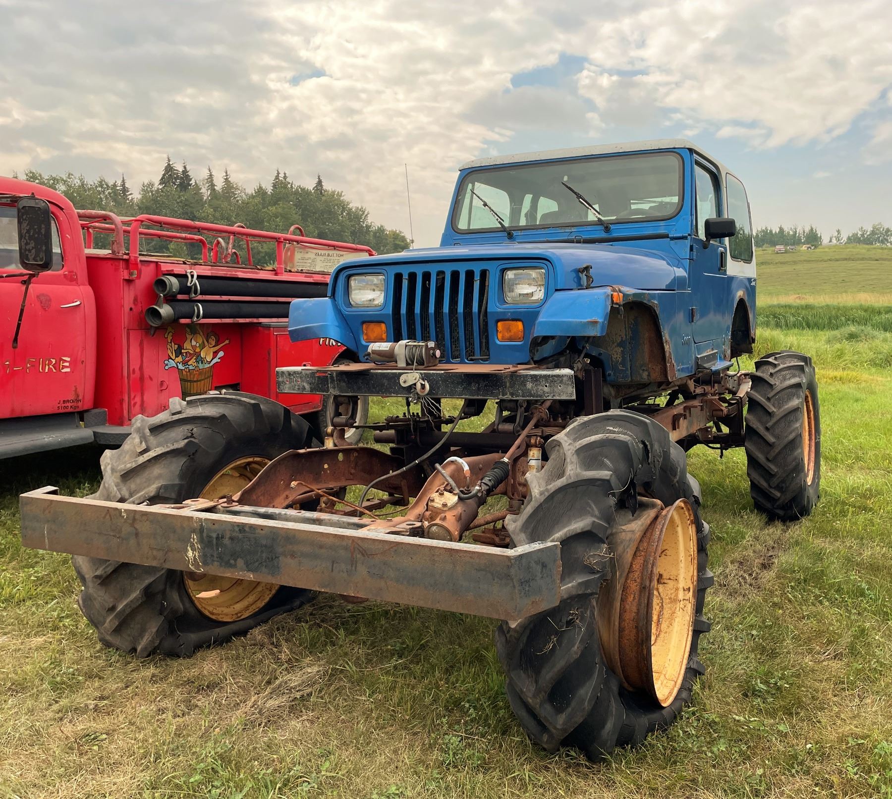 1993 Jeep , 4 cylinder standard on Dodge 1 ton frame , Has a reserve.