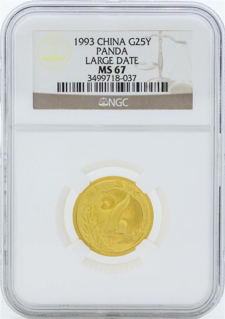 One 1993 Large Date China 25 Yuan Gold Panda Coin NGC MS67. NGC Certified.