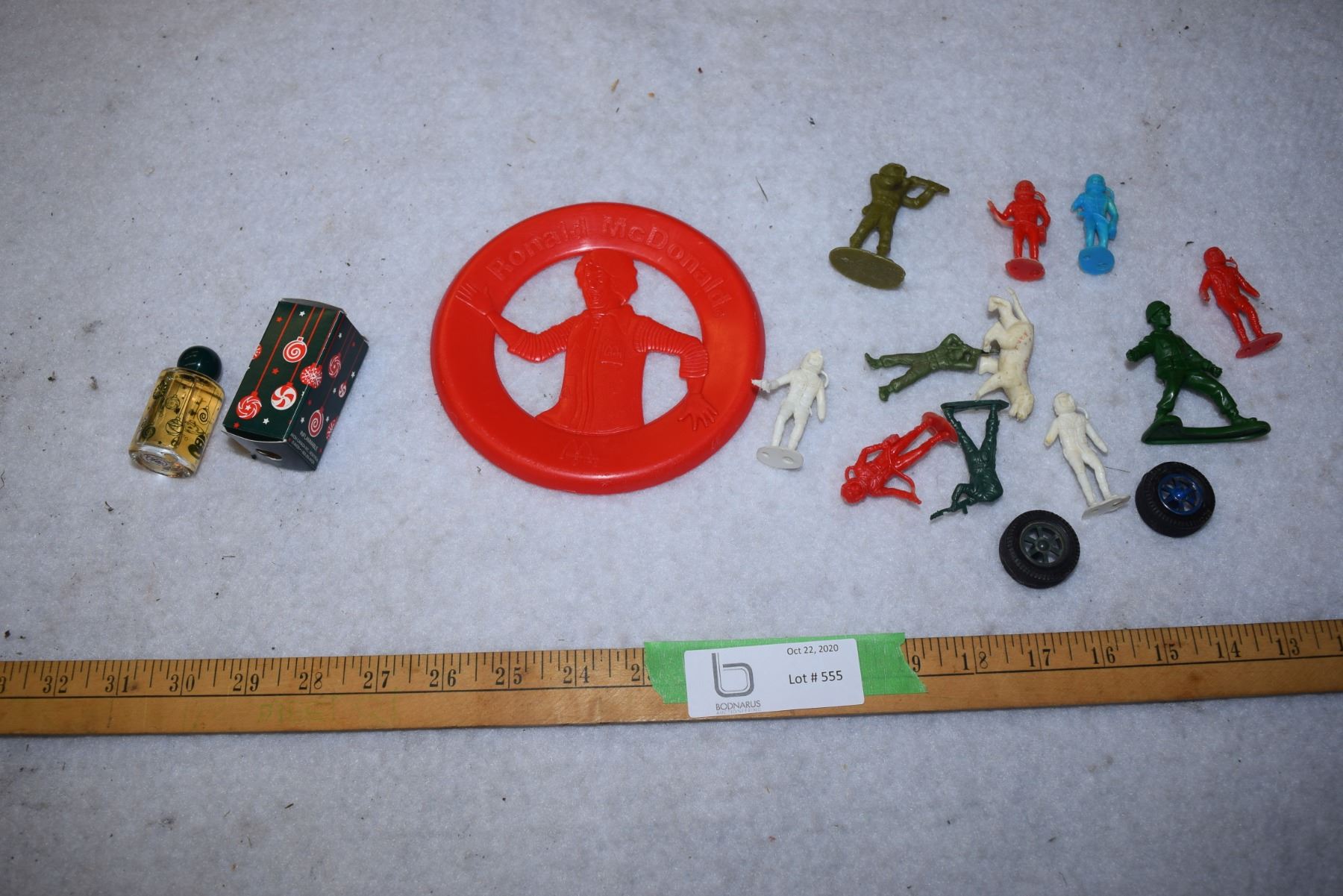 1993 MacDonald's Frisbee Promo and Group on Cereal Figurines and 15ML Avon Black Swede Cologne