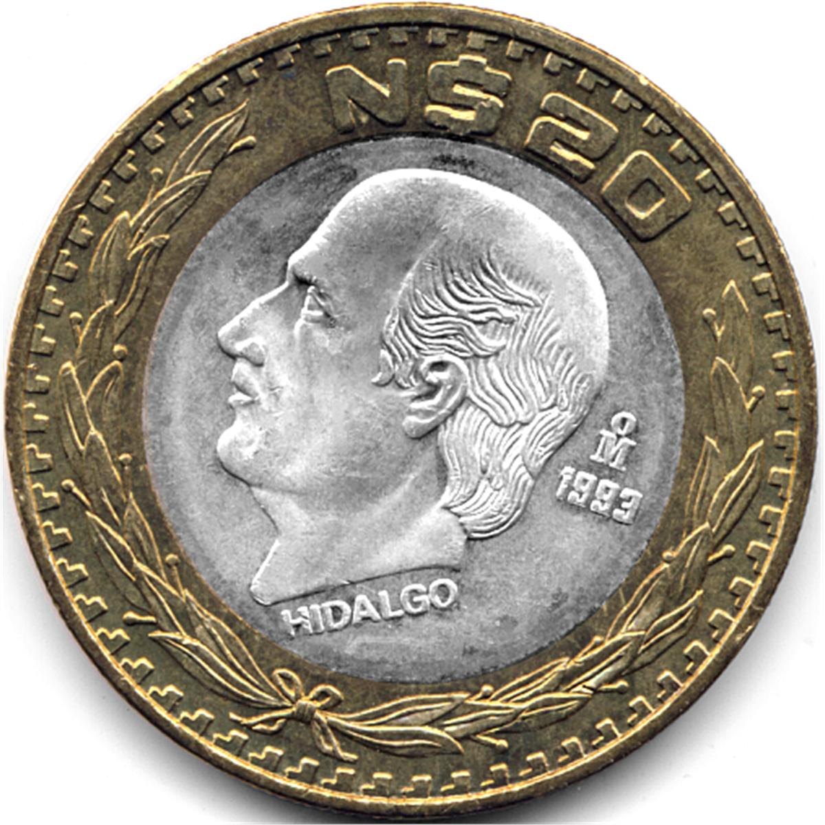 1993-Mo MEXICO SILVER BIMETAL 20 PESOS-CH BU+