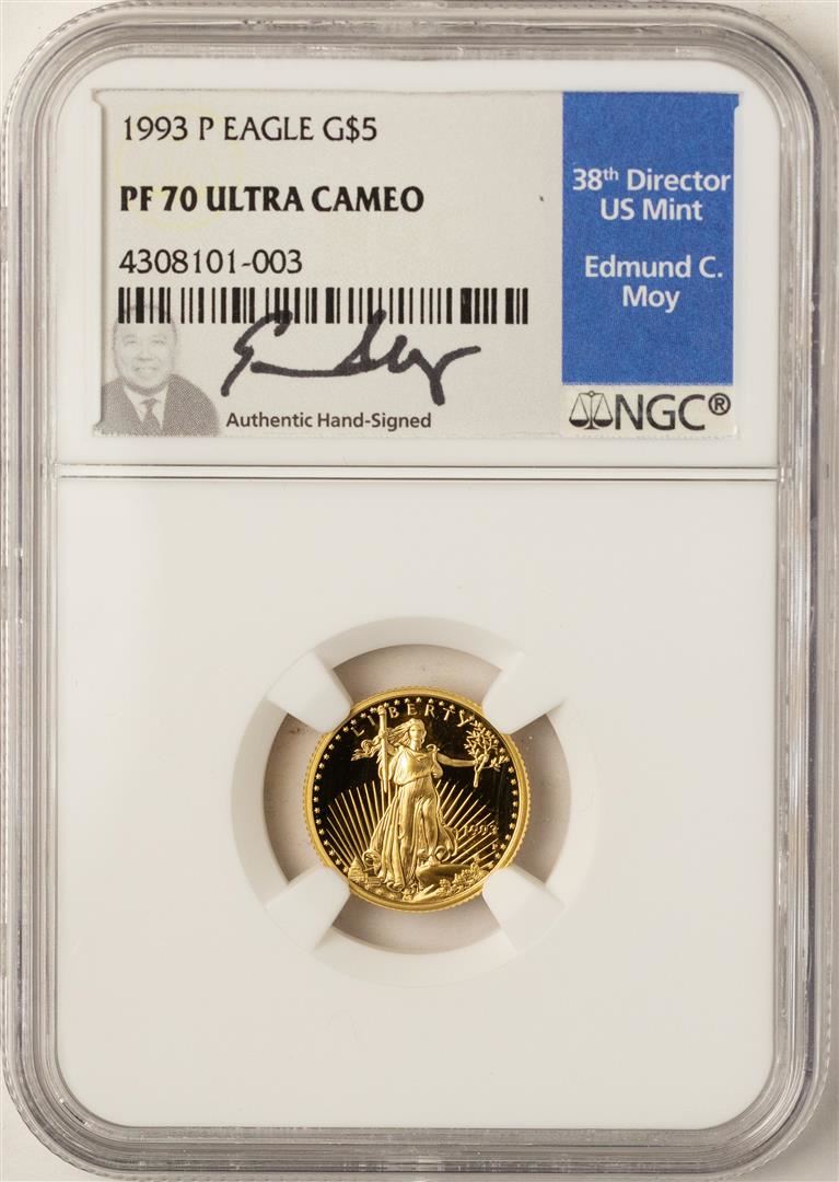 1993-P $5 American Gold Eagle Proof Coin NGC PF70 W/Edmund C. Moy Signature