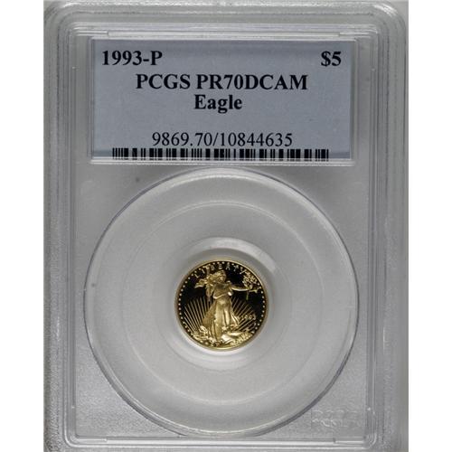 1993-P G$5 Tenth-Ounce Gold Eagle PR70 Deep Cameo PCGS
