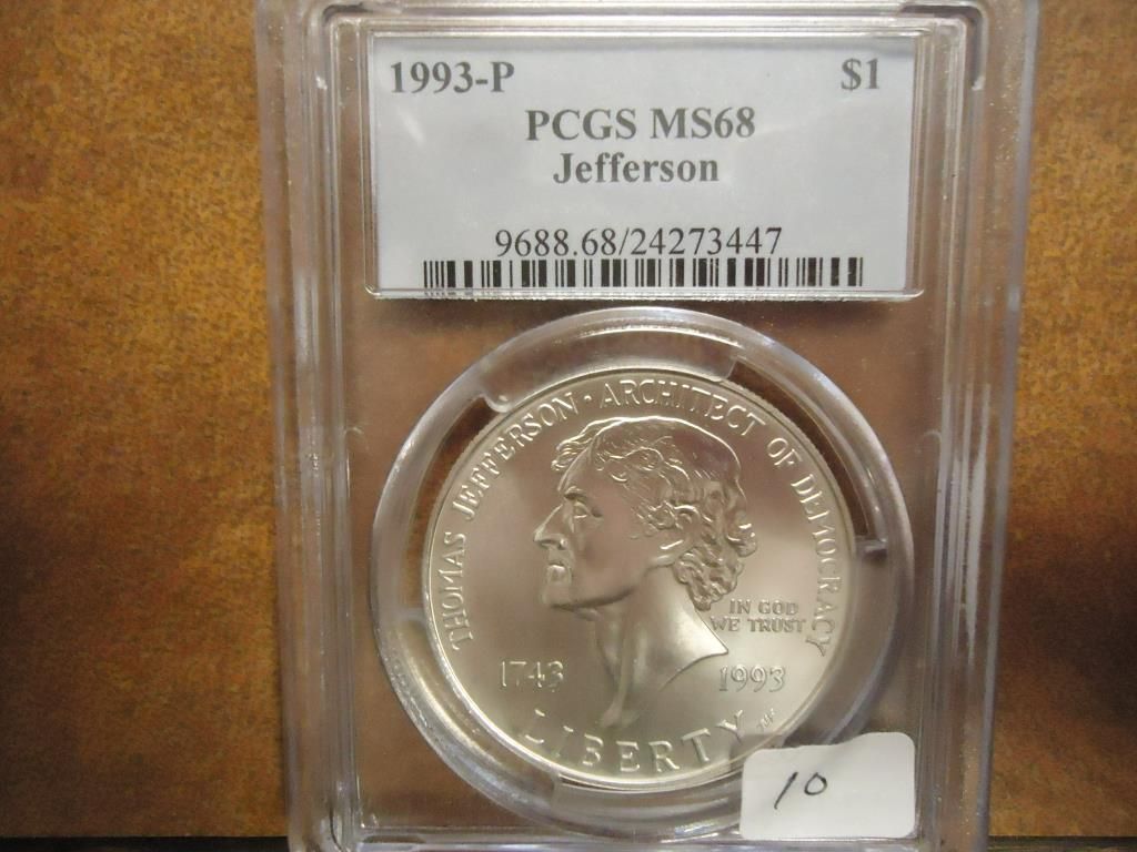 1993-P JEFFERSON COMMEMORATIVE SILVER $ PCGS MS68