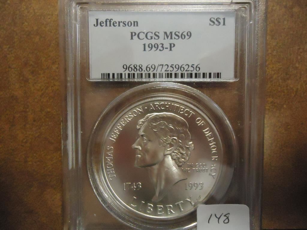 1993-P JEFFERSON COMMEMORATIVE SILVER $ PCGS MS69