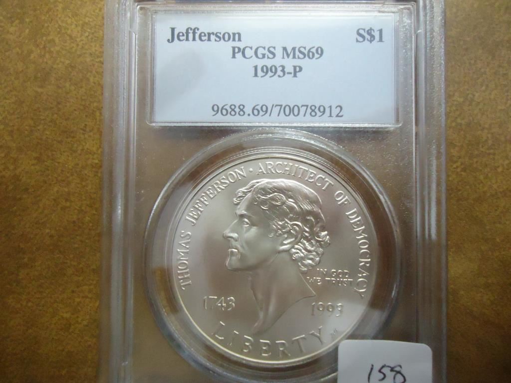 1993-P JEFFERSON COMMEMORATIVE SILVER $ PCGS MS69