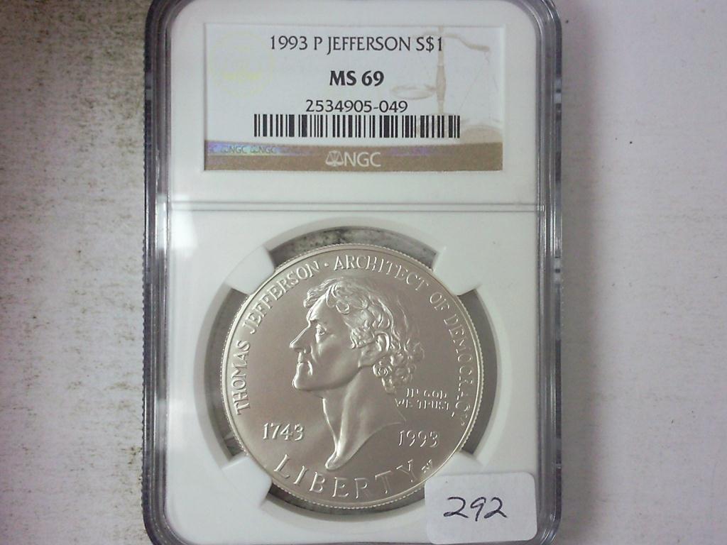 1993-P JEFFERSON SILVER DOLLAR NGC MS69