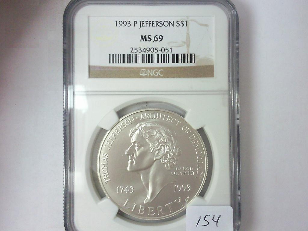 1993-P JEFFERSON SILVER DOLLAR NGC MS69