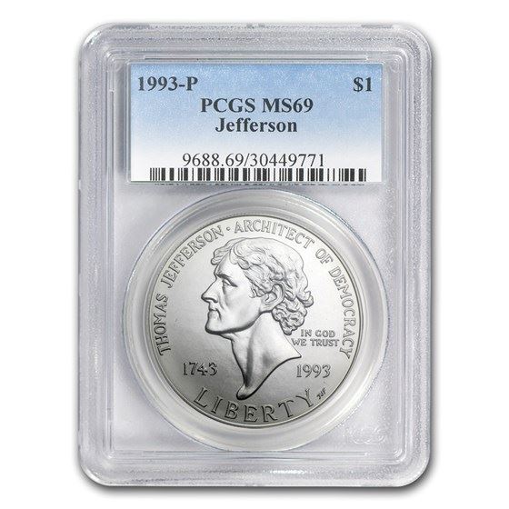 One piece 1993-P Jefferson 250th Anniv $1 Silver Commem MS-69 PCGS
