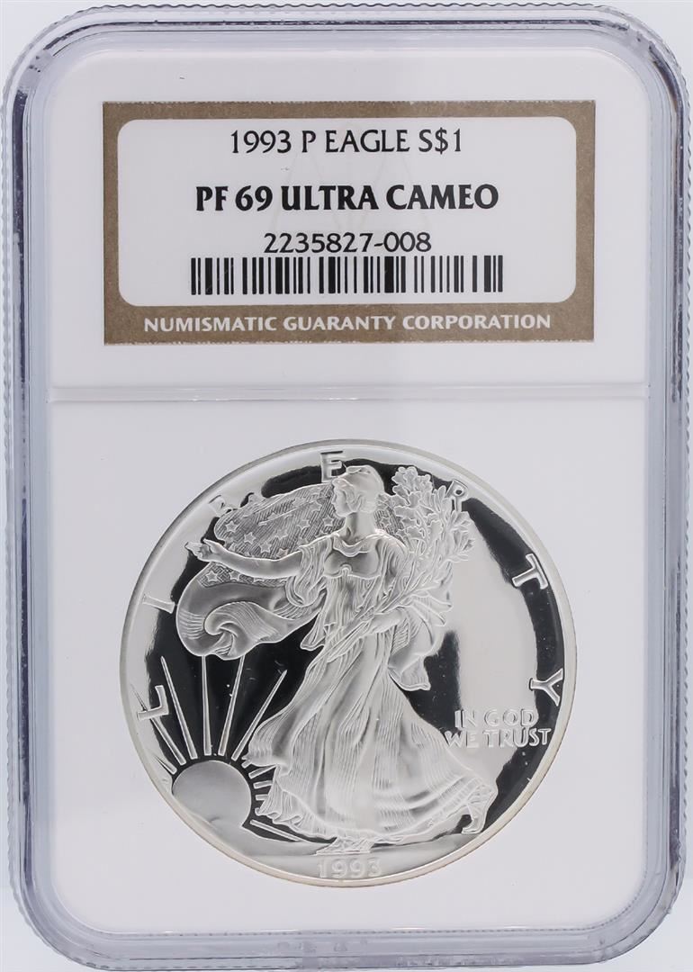 One 1993-P NGC Graded PF69 Ultra Cameo $1 American Silver Eagle Silver Coin. NGC Certified.