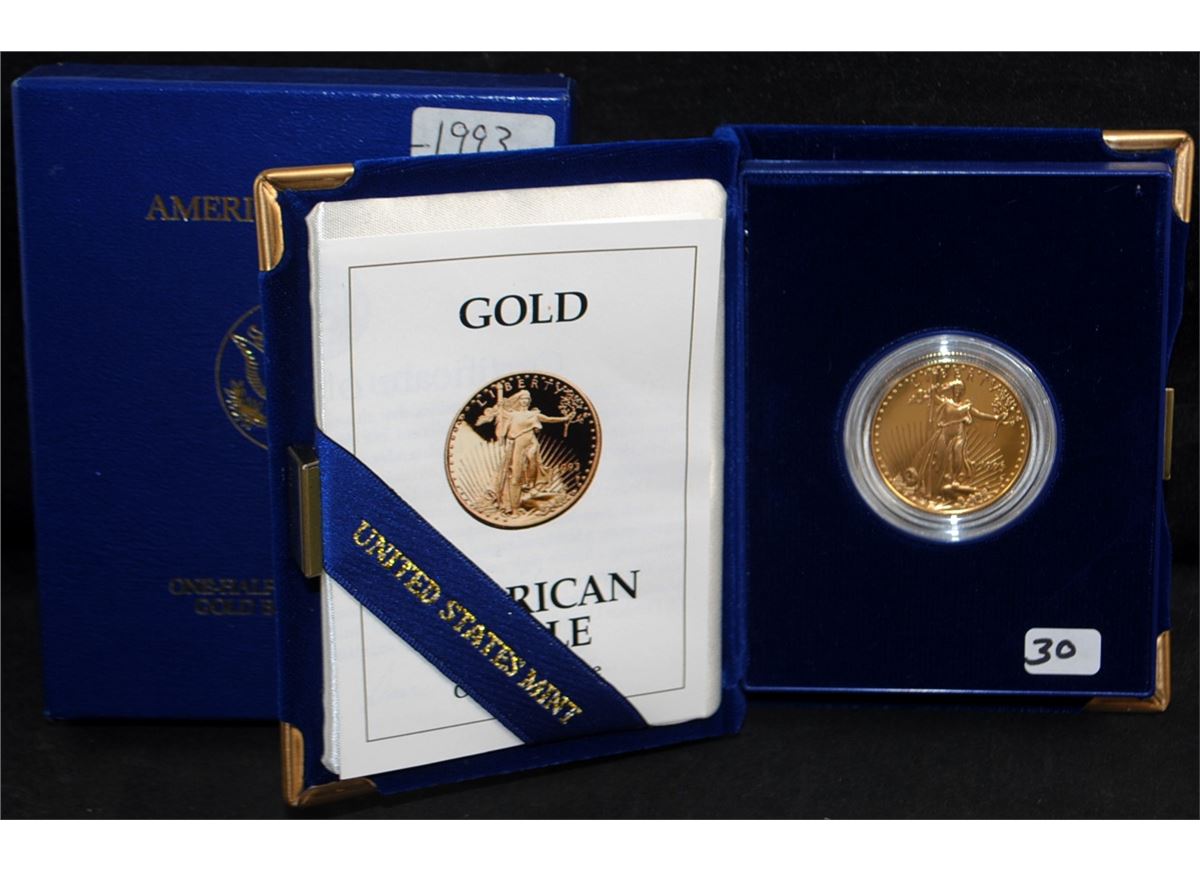 1993-P ONE-HALF OZ $25 PROOF GOLD AMERICAN EAGLE WITH ORIGINAL BOX AND CERTIFICATE OF AUTHENTICITY