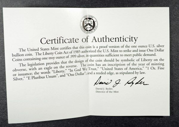 FILL IN AN EARLY MISSING DATE FROM YOUR COLLECTION FROM THE ONE OUNCE PROOF SILVER COIN SERIES, EST. $70.00 TO $75.00