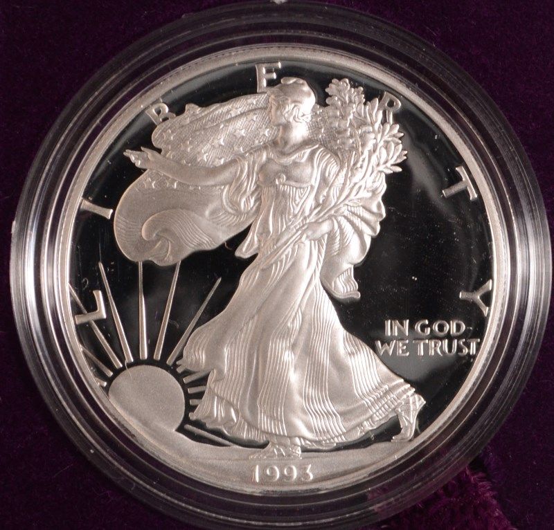 1993 PROOF AMERICAN SILVER EAGLE, IN ORIGINAL MINT BOX WITH CERTIFICATE