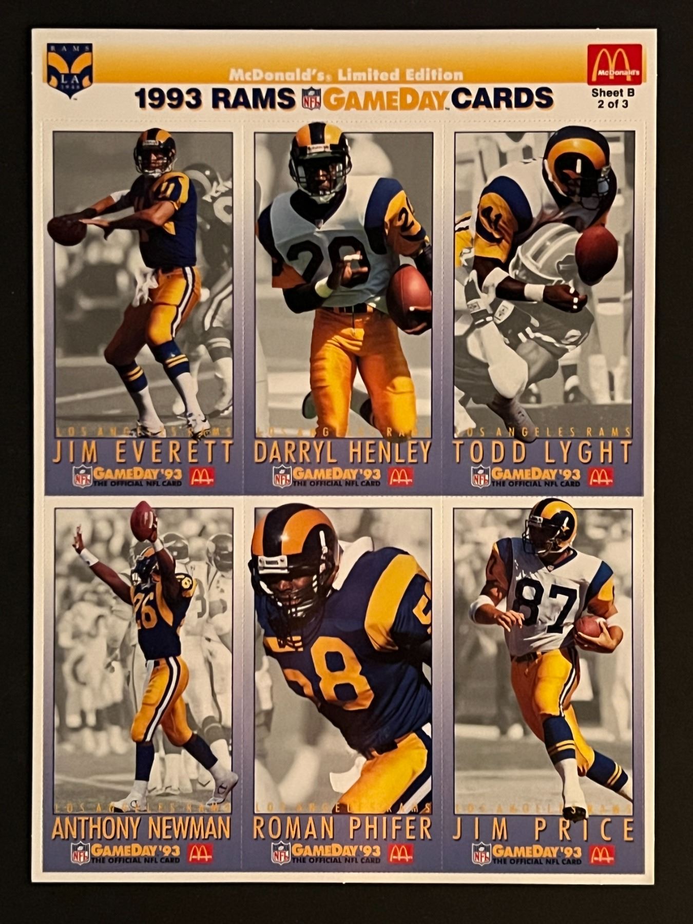 1993 Rams Football Uncut Card Sheet