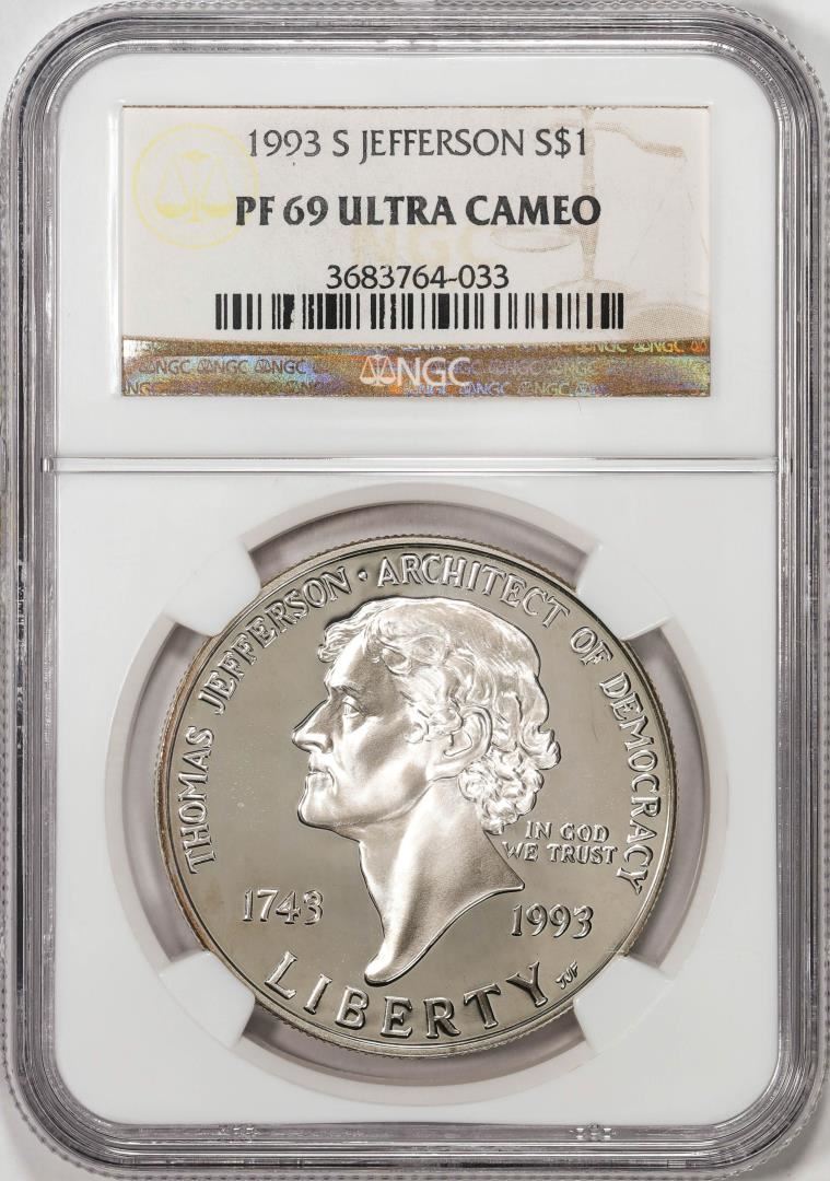 1993-S $1 Proof Jefferson Commemorative Silver Dollar Coin NGC PF69 Ultra Cameo