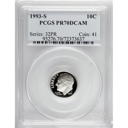 1993-S 10C Clad PR70 Deep Cameo PCGS. PCGS Population