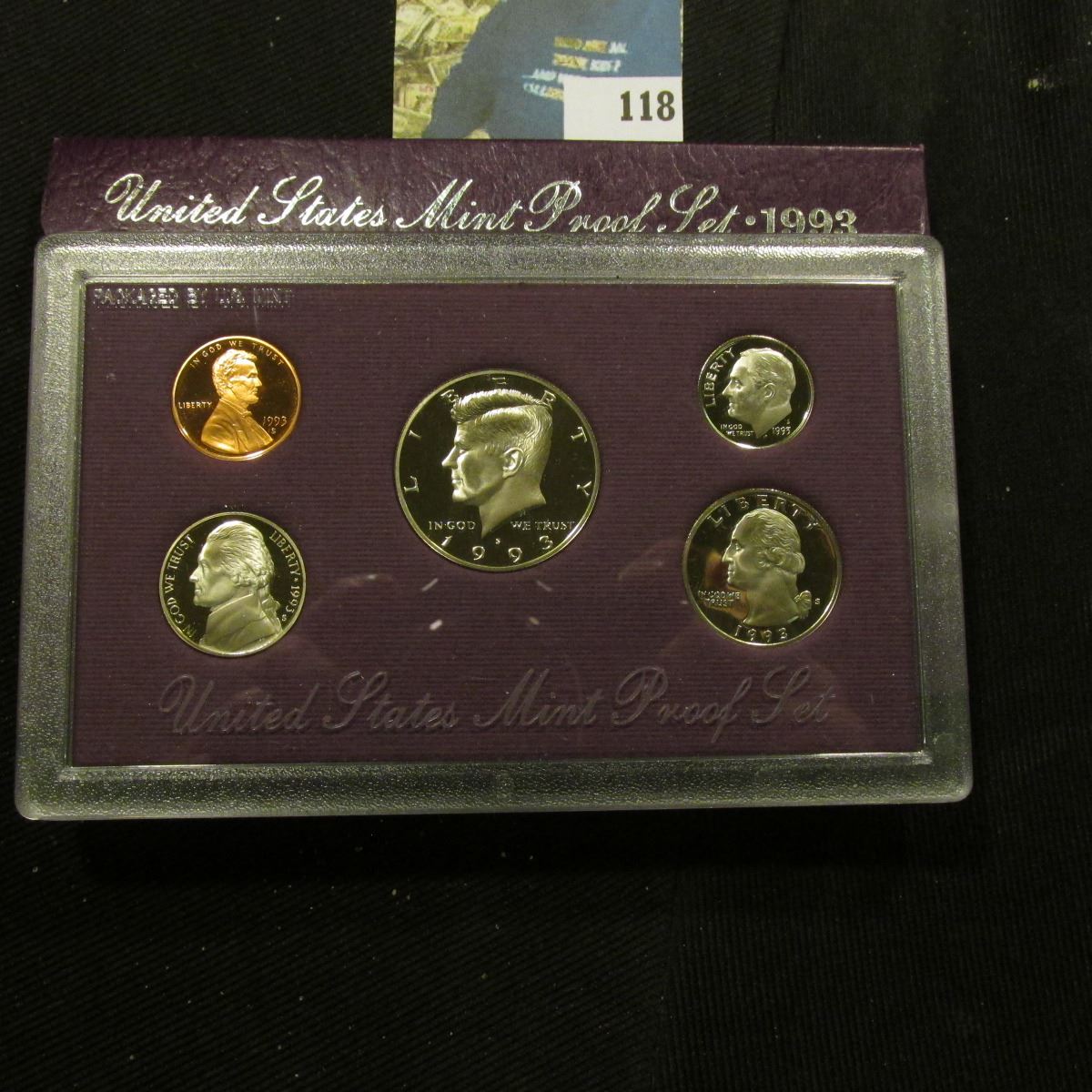 1993 S Deep Mirror Cameo U.S. Proof Set. Original as issued. Five-piece Set.