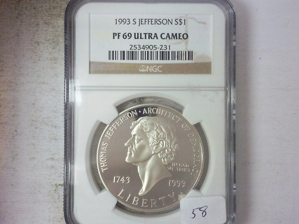 1993-S JEFFERSON SILVER DOLLAR NGC PF69 ULTRA CAM