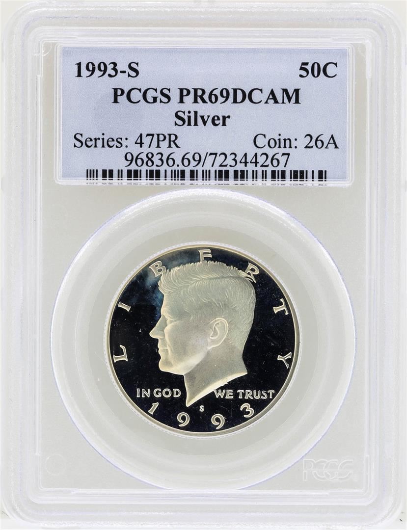 One 1993-S Kennedy Silver Half Dollar Coin PCGS PR69DCAM. PCGS Graded.
