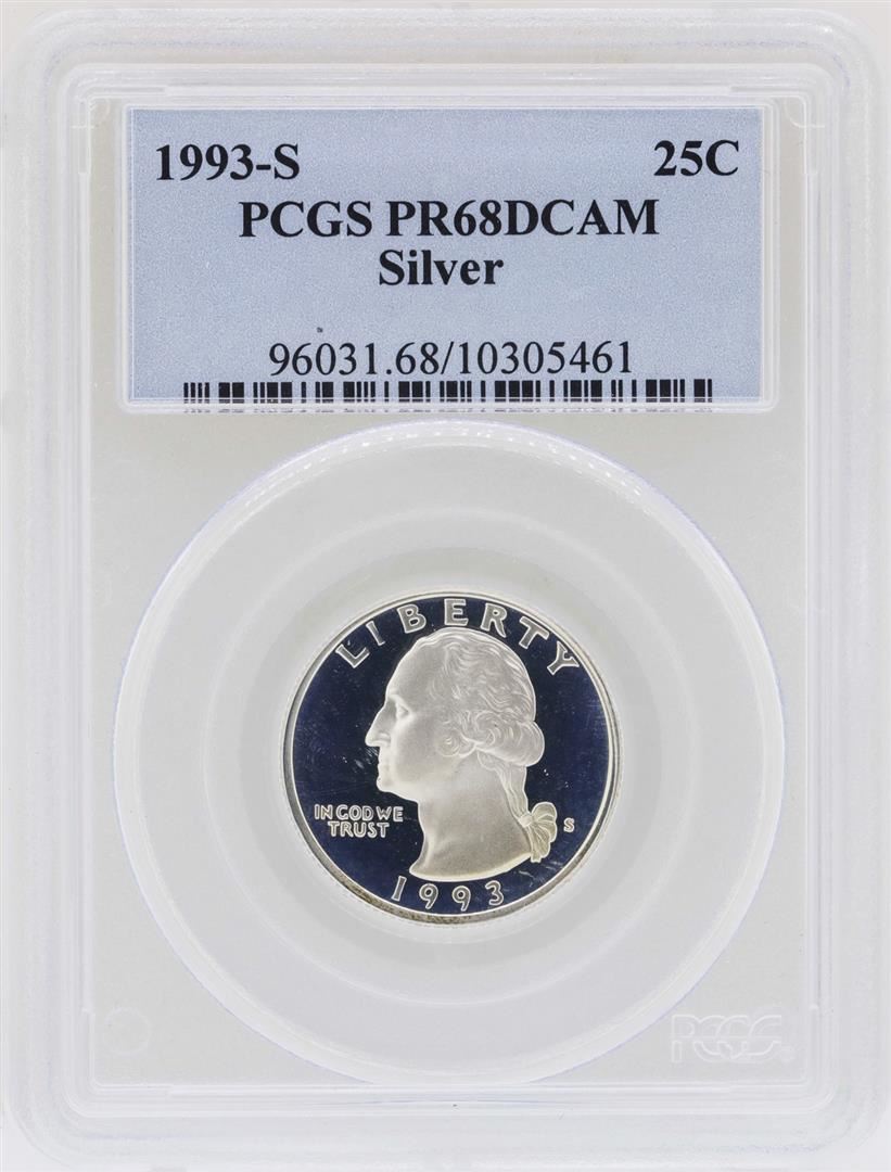 One 1993-S Washington Quarter Silver Coin PCGS PR68DCAM. PCGS Certified.