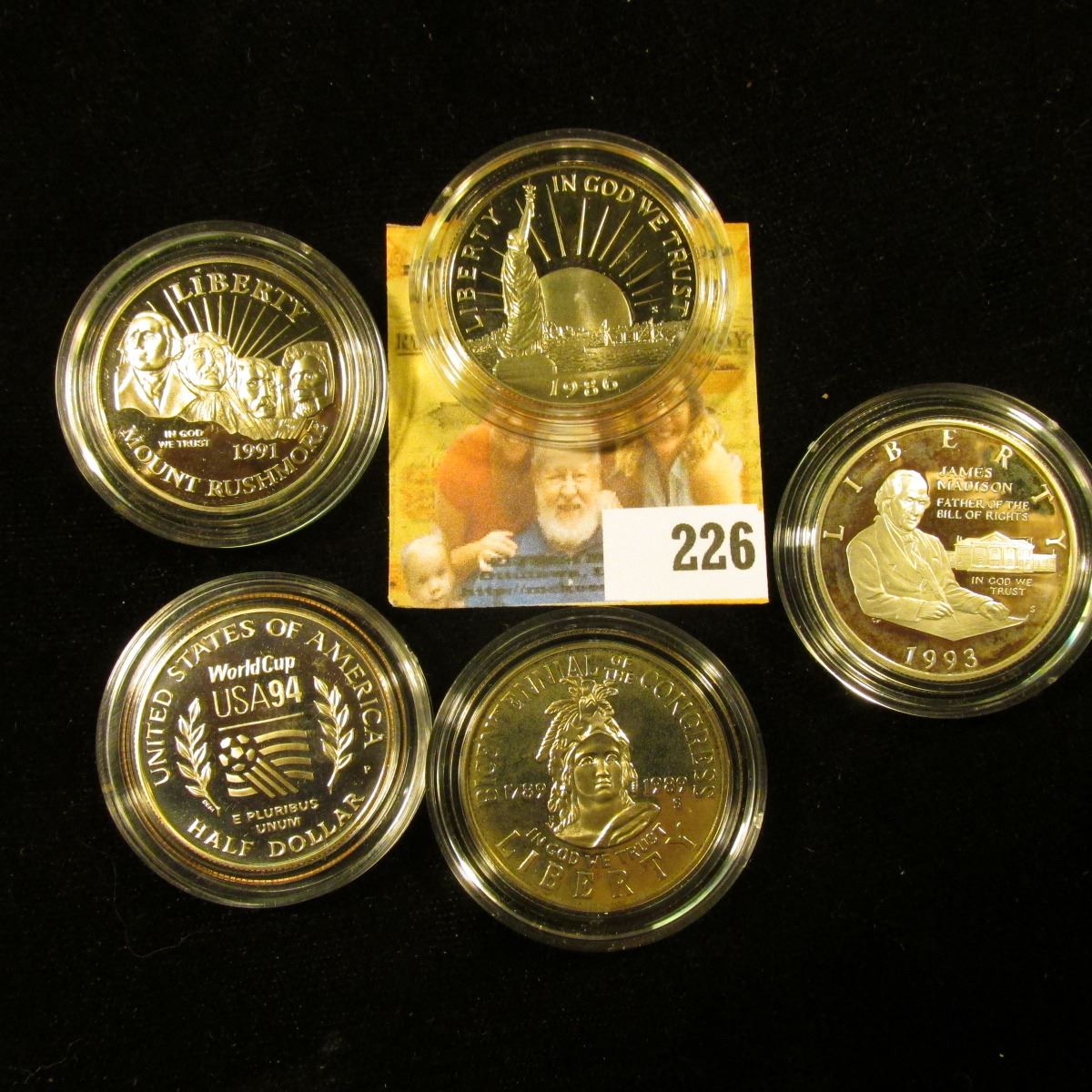 1993 SILVER JAMES MADISON/CONSTITUTION PROOF HALF DOLLAR PLUS MT RUSHMORE, BICENTENNIAL OF CONGRESS, WORLD CUP SOCCER, AND STATUTE OF LIBERTY