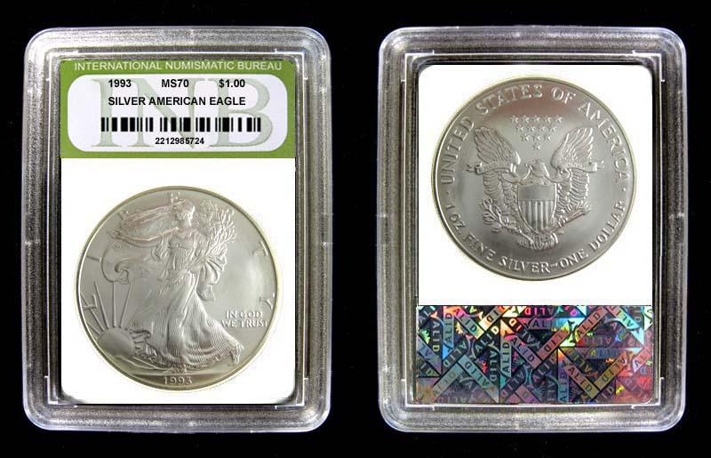 1993 SLABBED SILVER AMERICAN EAGLE HIGHEST GRADE INB GRADED MS70 - You may not receive the exact coin shown, but you will receive one of the same or better quality.
