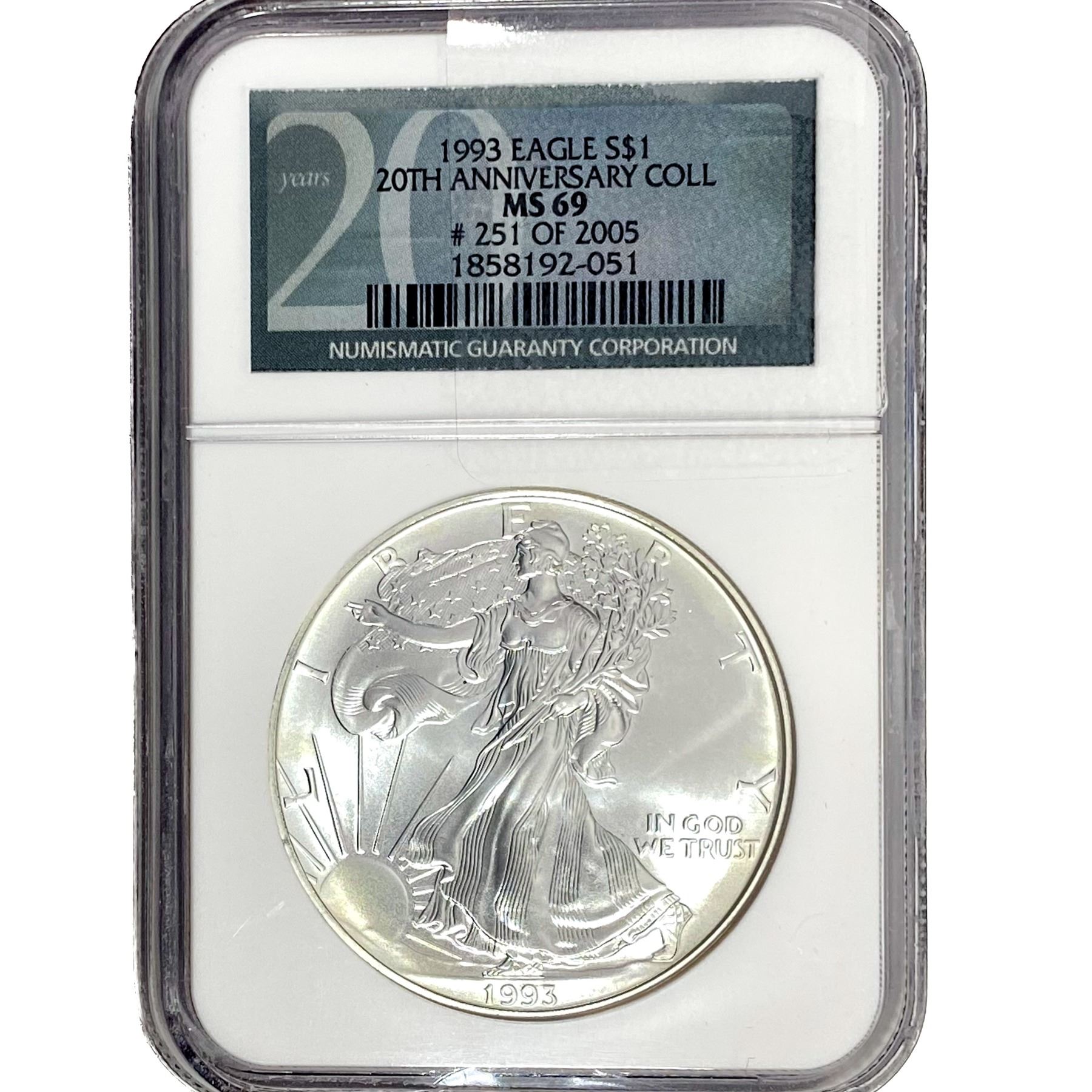 1993 Silver Eagle NGC MS69 20th Anniv.