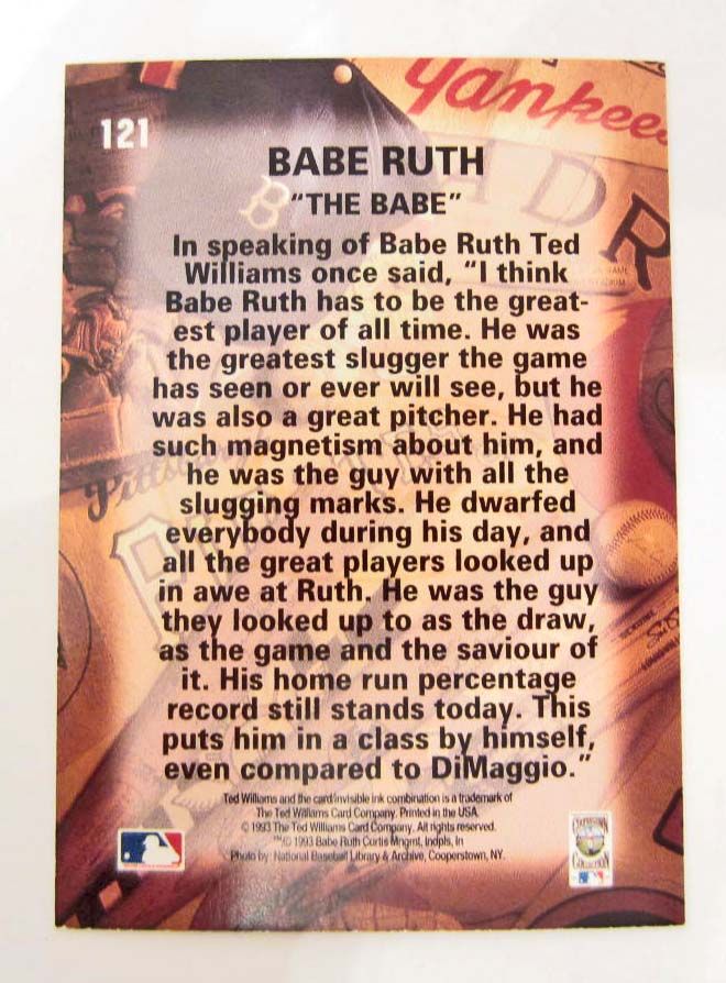1993 TED WILLIAMS BABE RUTH BASEBALL CARD #121