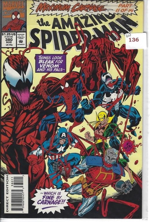1993 THE AMAZING SPIDER-MAN MARVEL COMIC #380 AUG MAXIMUM CARNAGE PART 11 OF 14