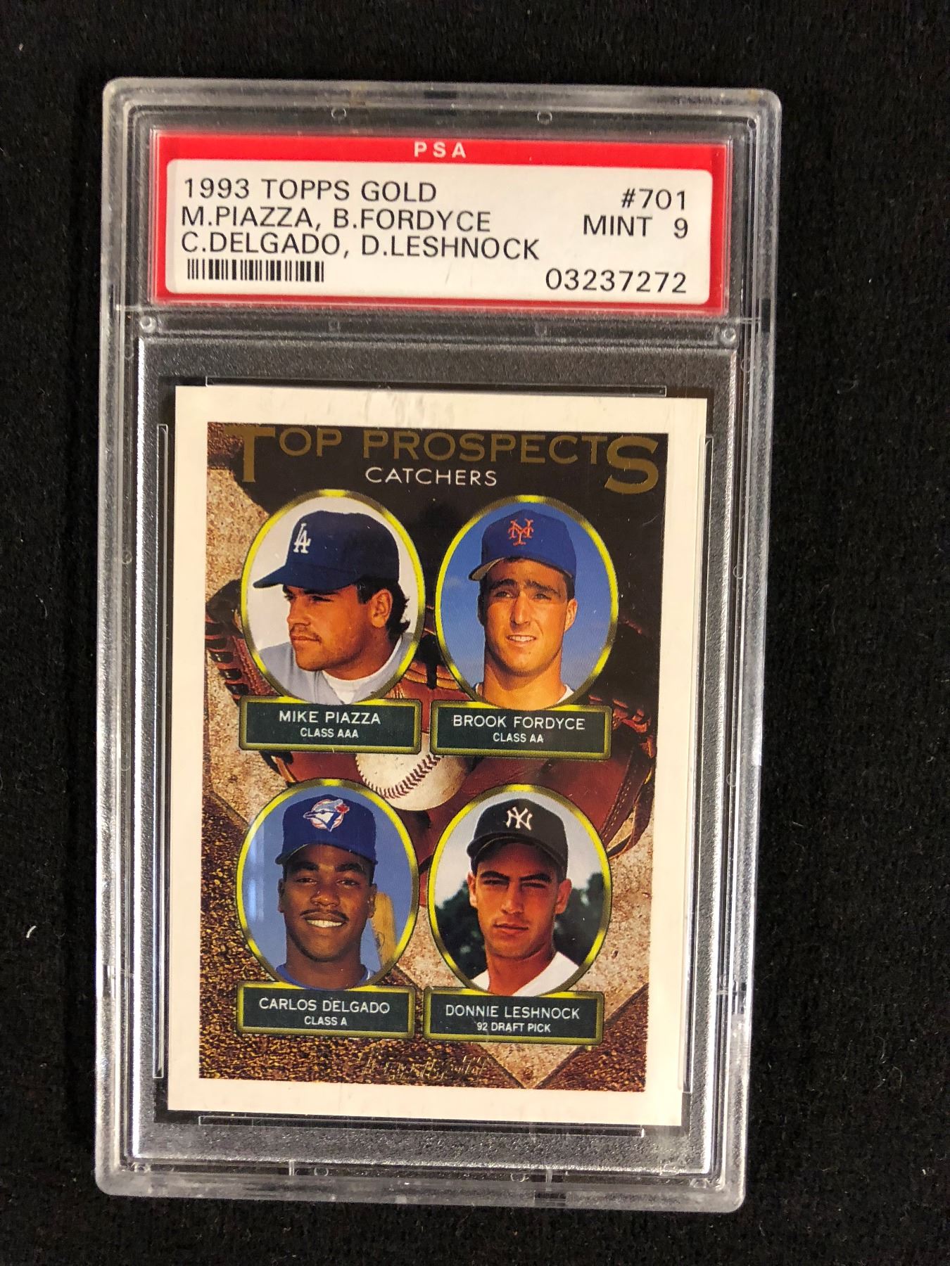 1993 TOPPS GOLD #701 M.PIAZZA, B.FORDYCE,C.DELGADO, D.LESHNOCK (MINT 9) PSA