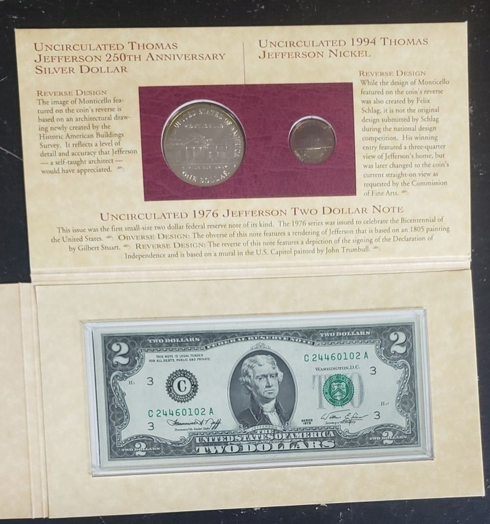 Silver Dollar Set 2 Coins & 2$ Bill
