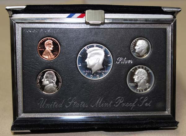 1993 U.S. Mint Premier Proof Set. In original display box, inside packing box which measures 6.25''Lx4.5''dx1.25''h. Buyers Pay Actual Shipping and Handling Charges(see terms and conditions for more information).