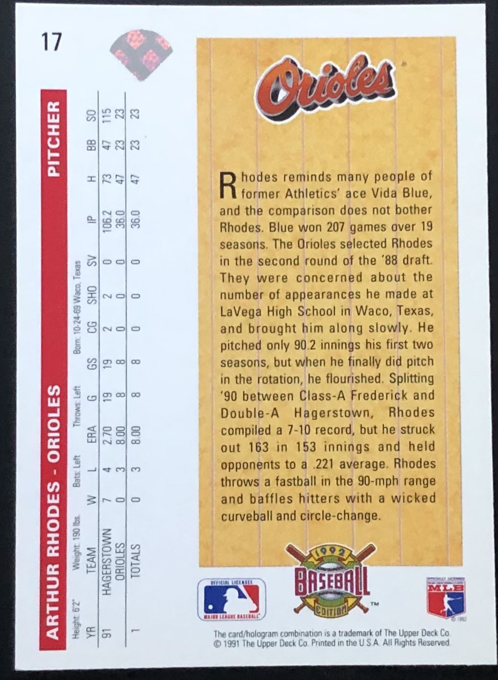 Card #17 MLB, UD, baseball, rookie
