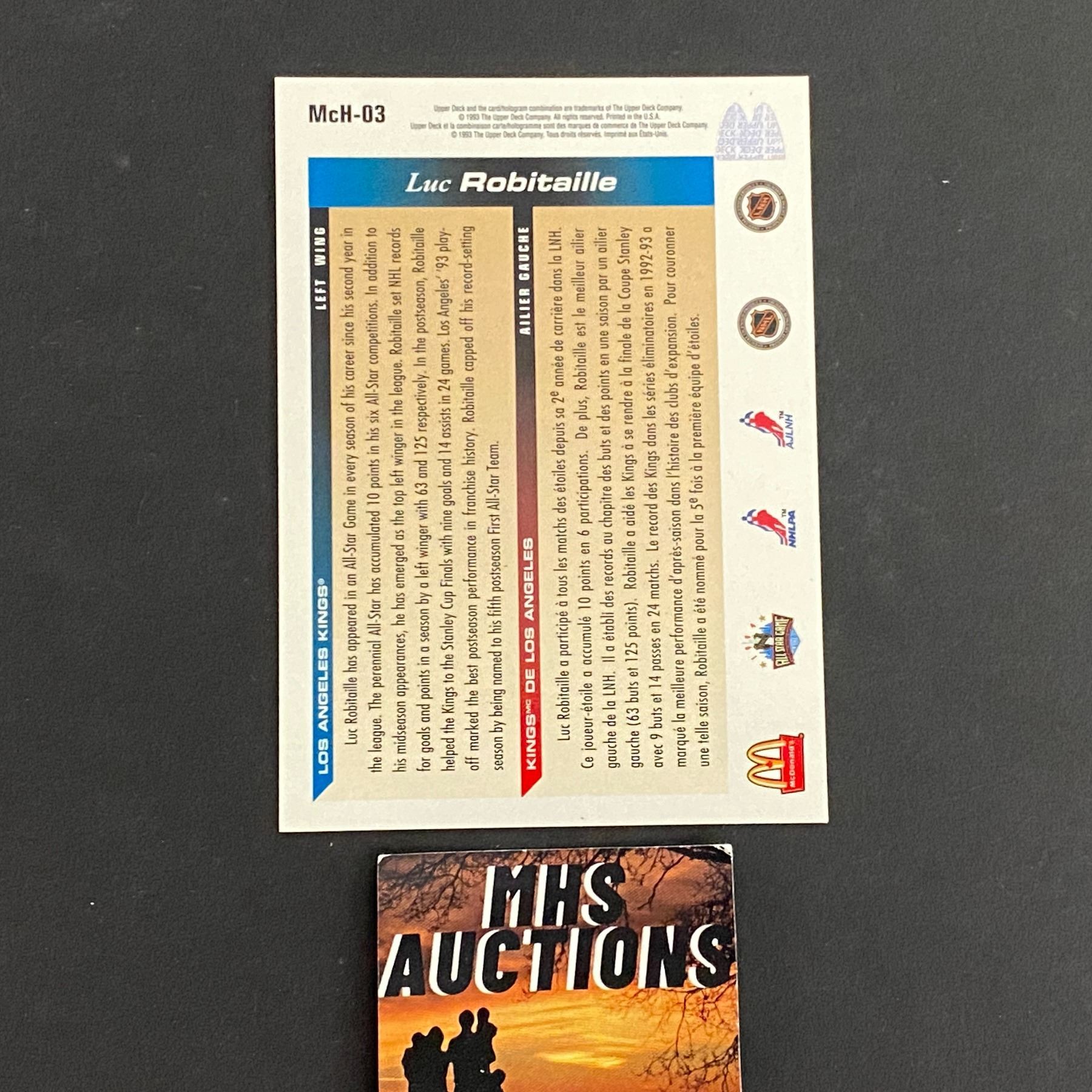 1993 UPPER DECK MCDONALDS LUC ROBITAILLE INSERT HOCKEY CARD
