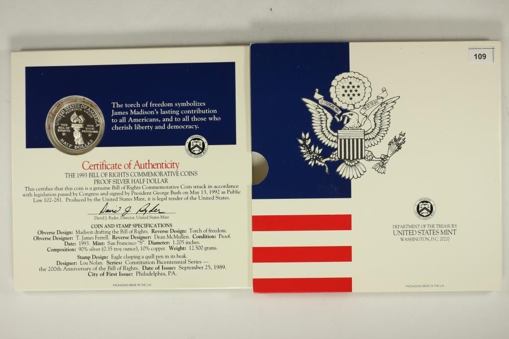 COIN & STAMP SET, ORIGINAL US MINT PACKAGING, CONTAINS: SILVER HALF DOLLAR AND 25 CENT STAMP
