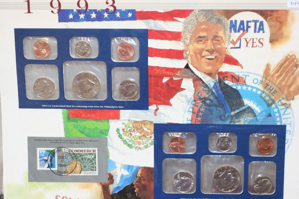 1993 US Mint Coin Set; P&D Mints; UNC W/Postal Stamp Commerating Bill Clinton signs NAFTA Dated 1994