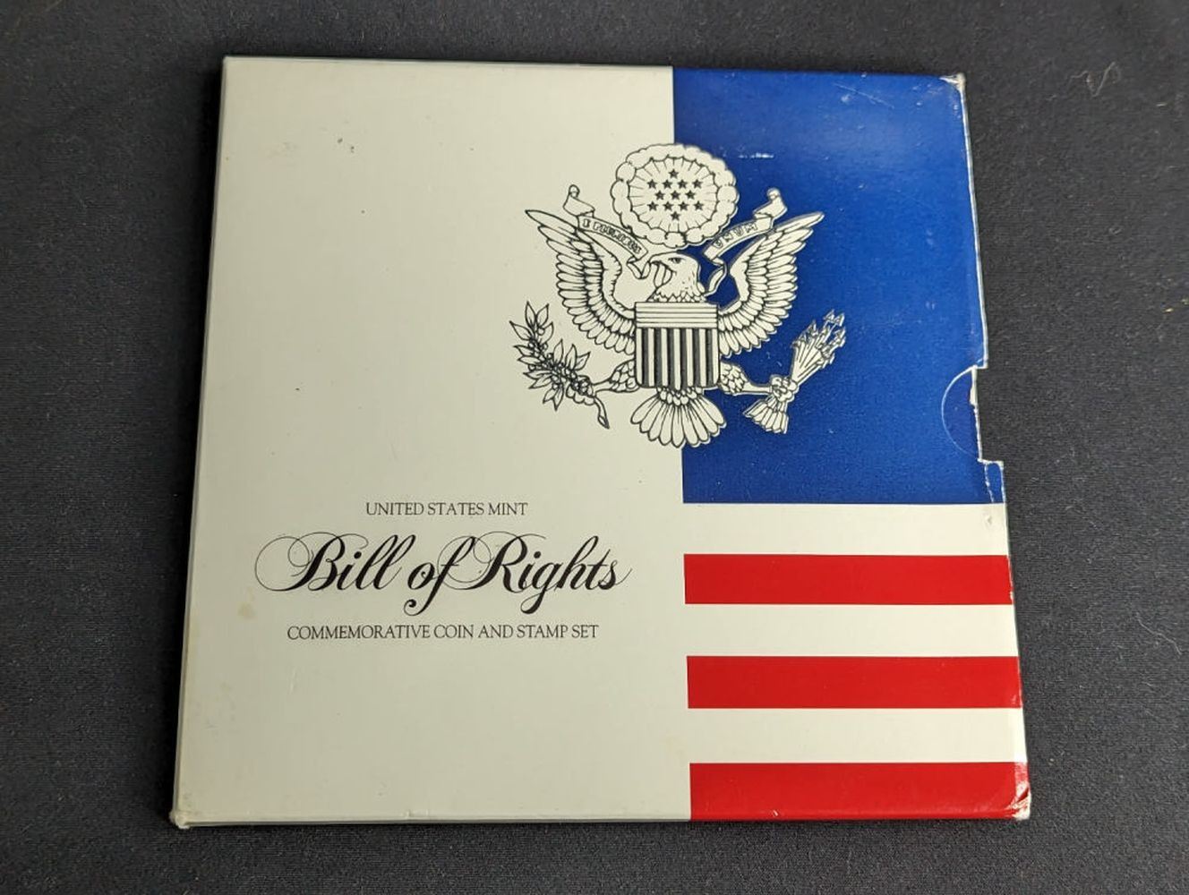 A 1993 Silver Proof Half Dollar Bill of Rights Commemorative Coin and Stamp. This Beautiful Commemorative Set Would make a Great addition to any Collection!!!