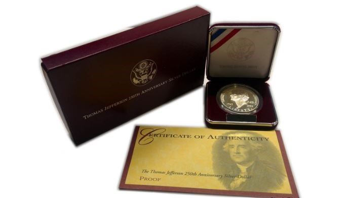 Thomas Jefferson 250th Anniversary Proof Silver Dollar