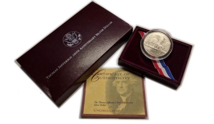 Thomas Jefferson 250th Anniversary UNC Silver Dollar