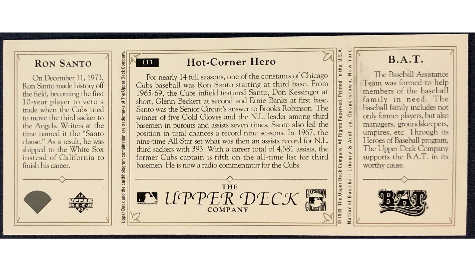 1993 Upper Deck BAT The Foundation Of Baseball Triple Folder - RON SANTO (HOF)