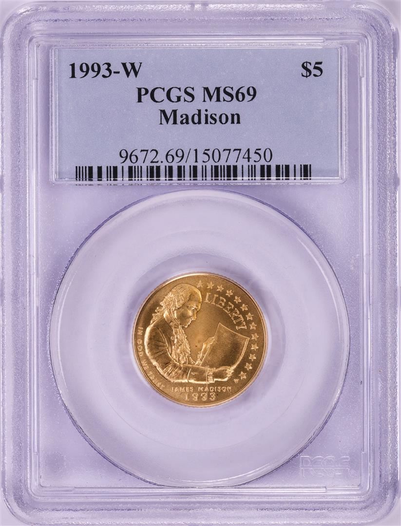 One 1993-W $5 Madison Commemorative Gold Coin PCGS MS69. PCGS Graded.