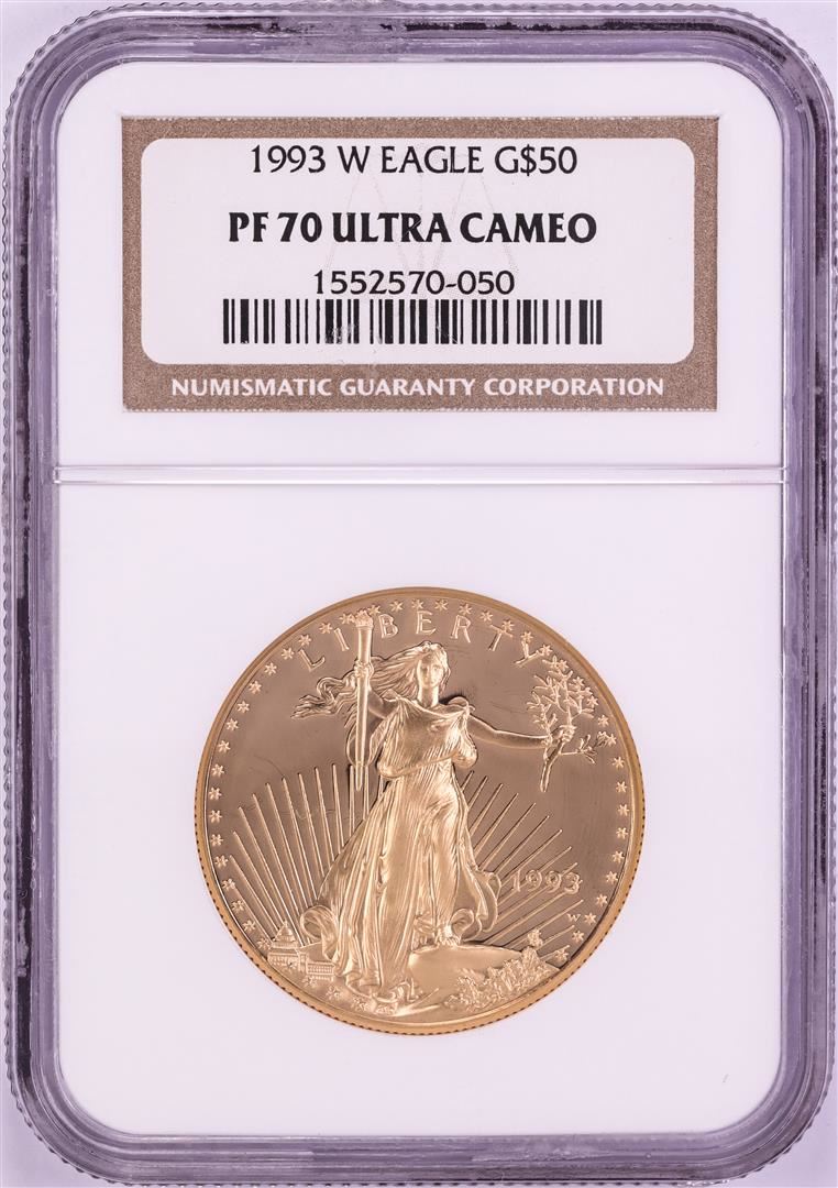 One 1993-W $50 Proof American Gold Eagle Coin NGC PF70 Ultra Cameo. NGC Certified.