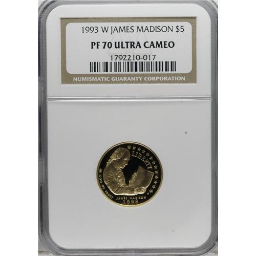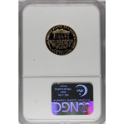 1993-W G$5 Bill of Rights Gold Five Dollar PR70 Deep