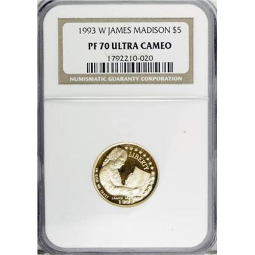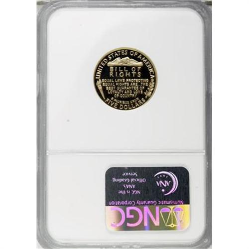 1993-W G$5 Bill of Rights Gold Five Dollar PR70 Deep