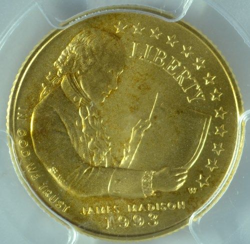 1993-W MADISON $5.00 GOLD COMMEMORATIVE, PCGS MS-69