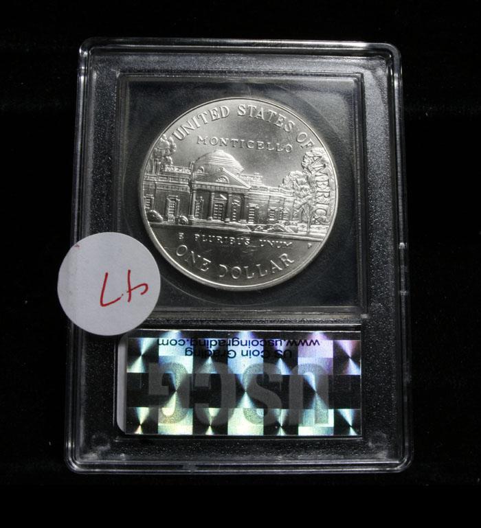 The 1993 Thomas Jefferson Silver Dollar was actually issued in 1994 although the coins are dated 1993. The commemorative coins were issued to celebrate the 250th anniversary of Thomas Jefferson's birth. This is a perfect example Encapsulated and Graded ms70 by USCG. PCGS lists ms70 as $400. Estimated Value $125