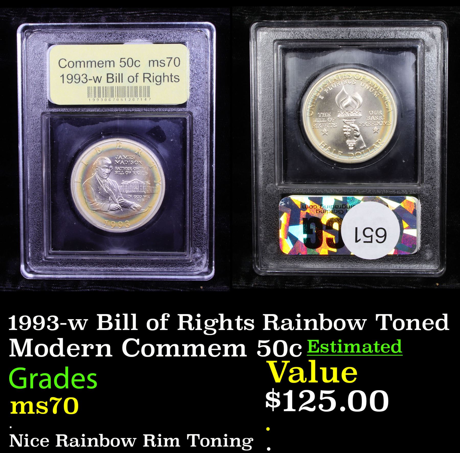 1993-w Bill of Rights Rainbow Toned Modern Commem Half Dollar 50c Graded ms70, Perfection By USCG.