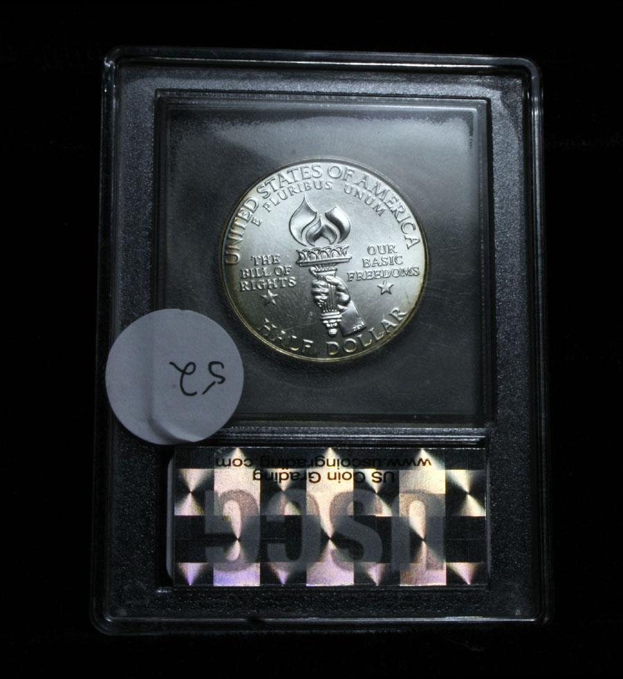 One of only 2 modern commemorative half dollars to be struck in silver. Just this and the George Washington half have been struck in silver. This coin commemorates James Madison and the Bill of Rights. This example was Graded ms70 perfection by USCG. PCGS lists ms70 at $325. Estimated Value $100