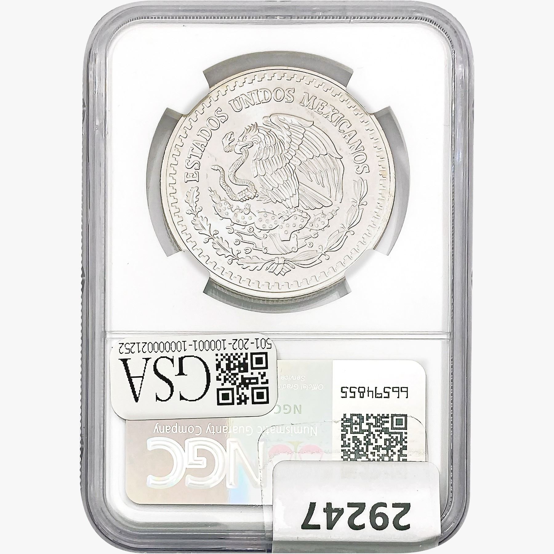 1993Mo 1oz. Silver Mexicanos Onza NGC MS67